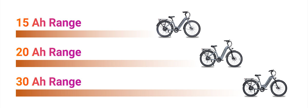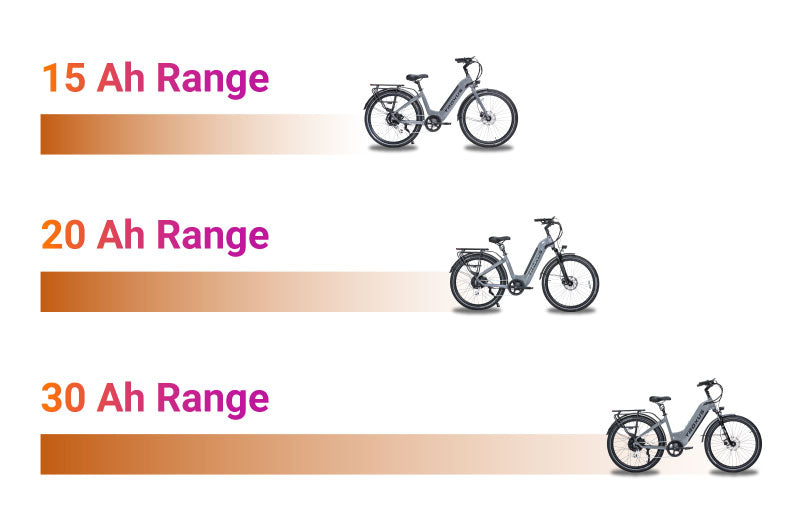 The battery range varies depending on several factors, but typically, you can travel 30 to 60 miles on a single charge. Please note that riding conditions, speed, and payload can affect the range.